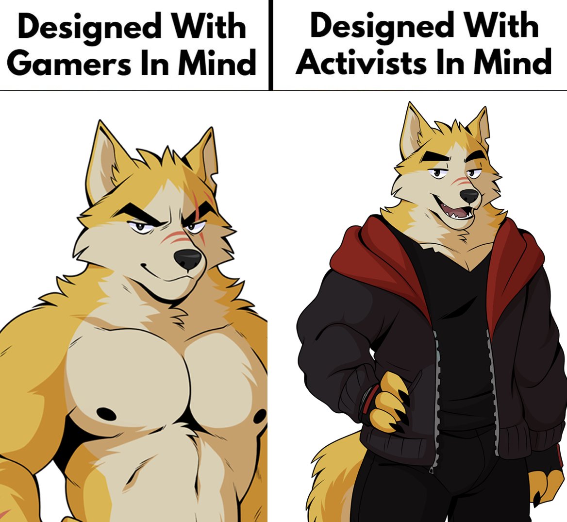 左邊是玩家想要的,右邊是(激進DEI的)遊戲設計師給的