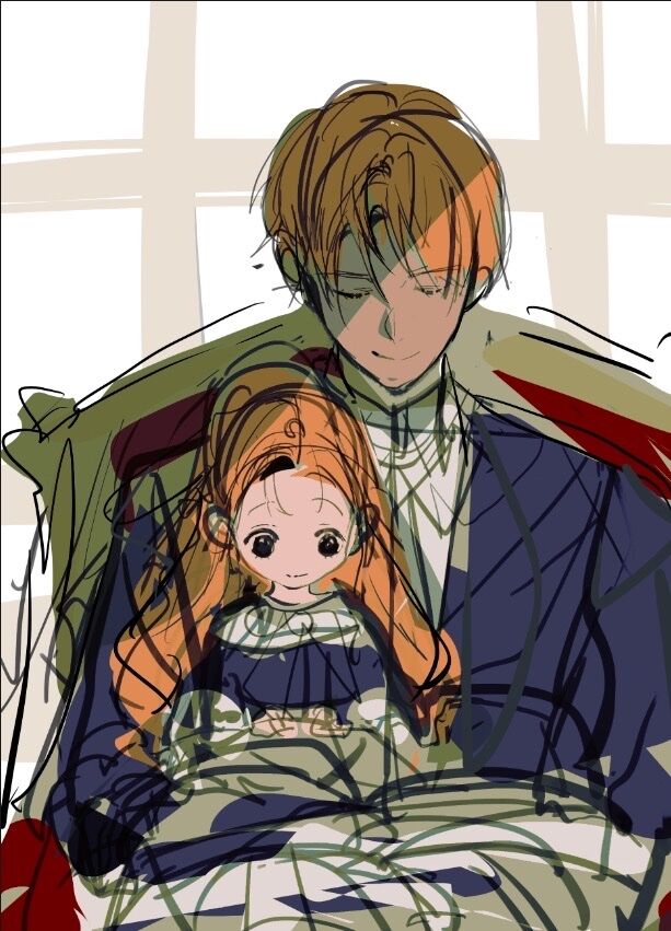 好喜歡第三集的封面。把爸爸呵護費蓮緹雅那種全心全意的父愛都透過父女一起讀書的畫面傳遞出來了。好溫馨的一幕情景。如果故事裡面有家族請畫家繪製人物像委託的情節,應該也要請畫師記錄下父女溫馨相處的時刻。