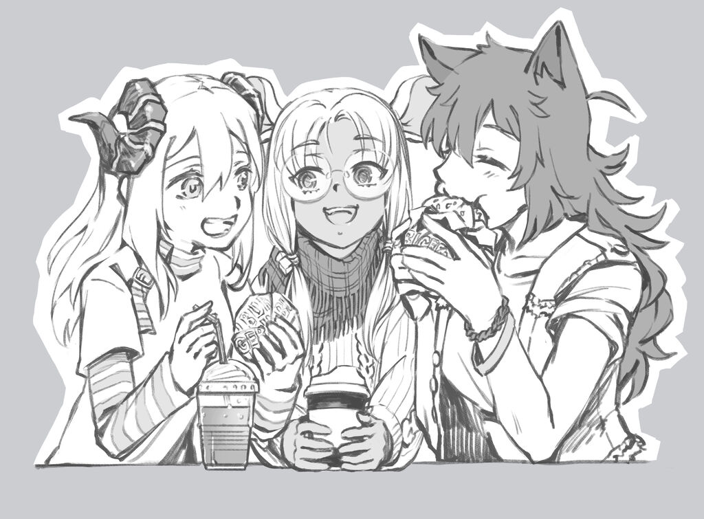 很喜歡女孩們這張,肯定是多虧了大方又照顧人的Nineri,畢竟咱家的大貓咪跟有著幼龍血統的莉絲都是I人(?