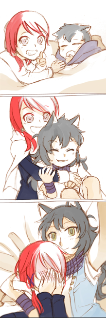 當時Tumblr讀者間分為MeixLi & MeixAnya兩派 (我都不知道自己筆下的人物還能衍伸黨爭...) 很久之後又因為貓與老鼠的點子創造了Nineri,一隻嬌小但其實是研究生的勞贖,也算正式給她官配了吧