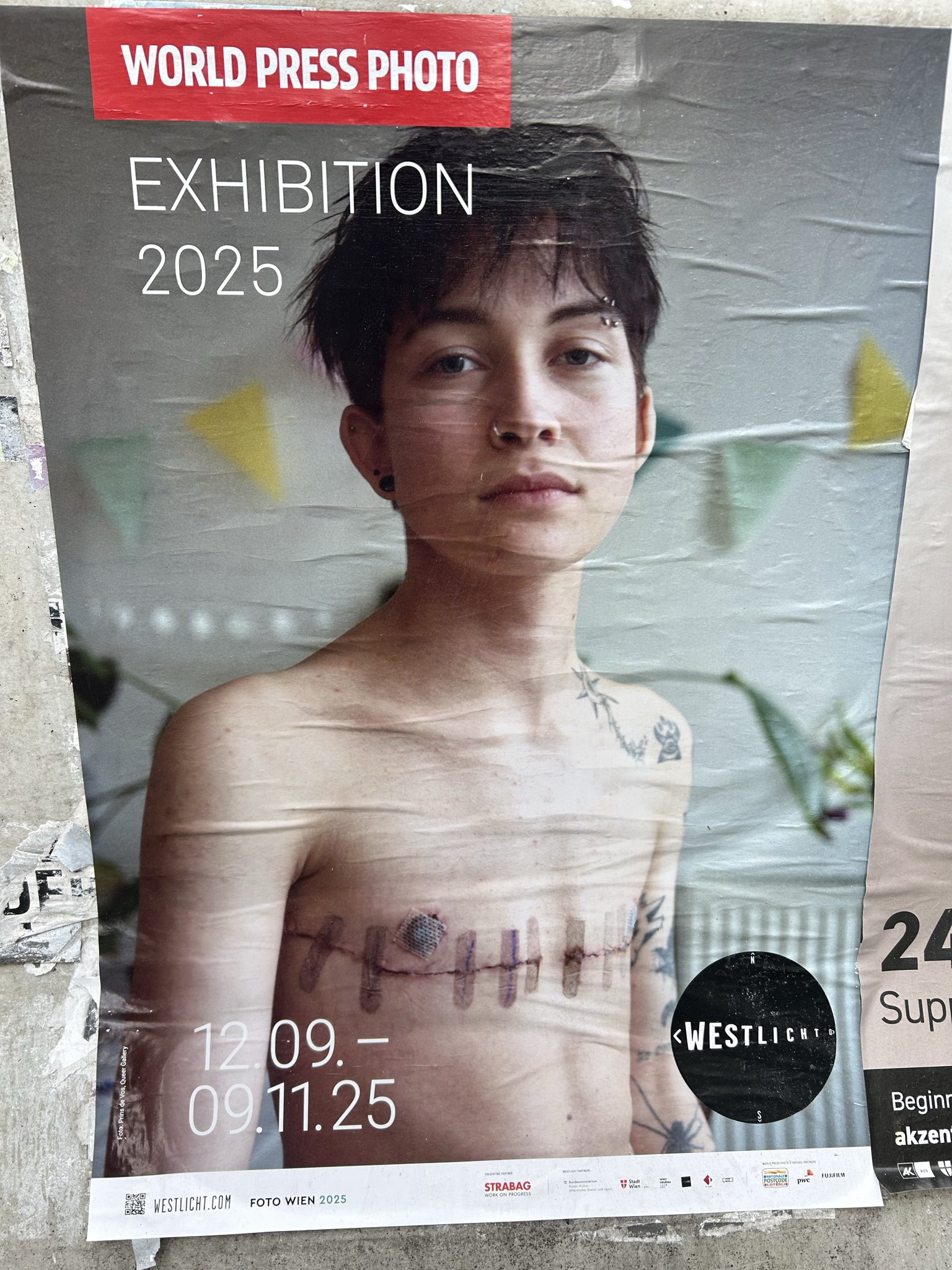 「來,給你的女兒們解釋一下,為什麼這才算是在慶祝『美麗與力量(beauty and strength)』。這幅作品名為《米卡 = Mika》,由普林斯·德·沃斯(Prins de Vos)創作,他是2025年世界新聞攝影大賽歐洲賽區的獲獎者之一。」