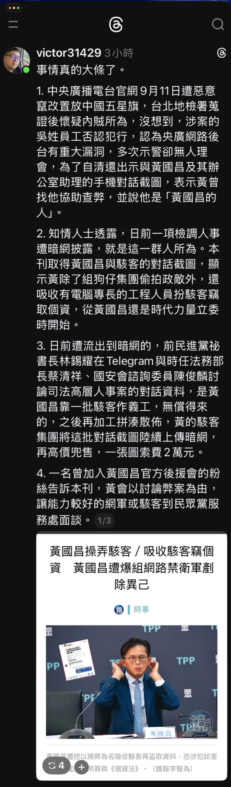 黃國昌操弄駭客4/利用網軍肉搜三立記者 蔥粉禁衛軍霸凌套路曝光 - 鏡週刊 Mirror Media
