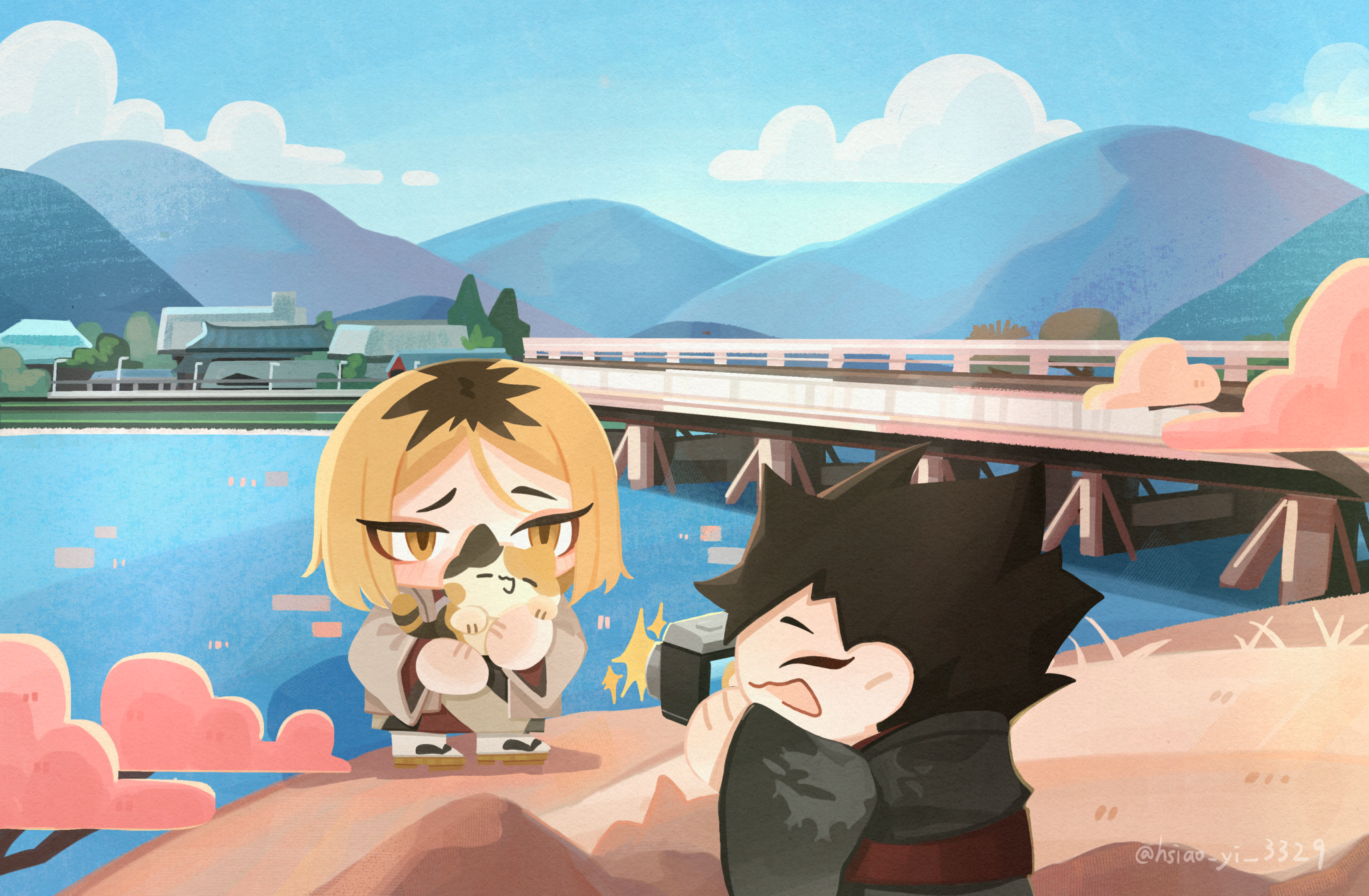 孤爪研磨轉過頭,他的青梅竹馬兼戀人正一臉微笑地低頭檢查相機裡上一秒拍的照片,片刻後又抬起頭,舉起相機對著他喊: