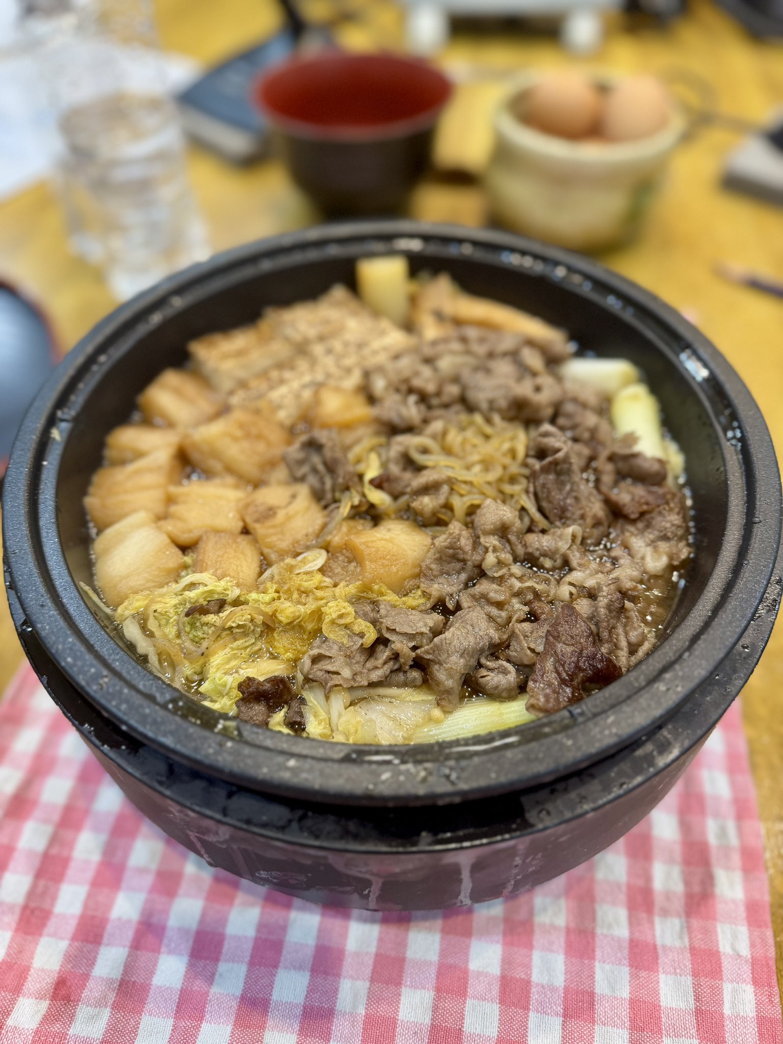 桌上還有吃到一半的壽喜燒
