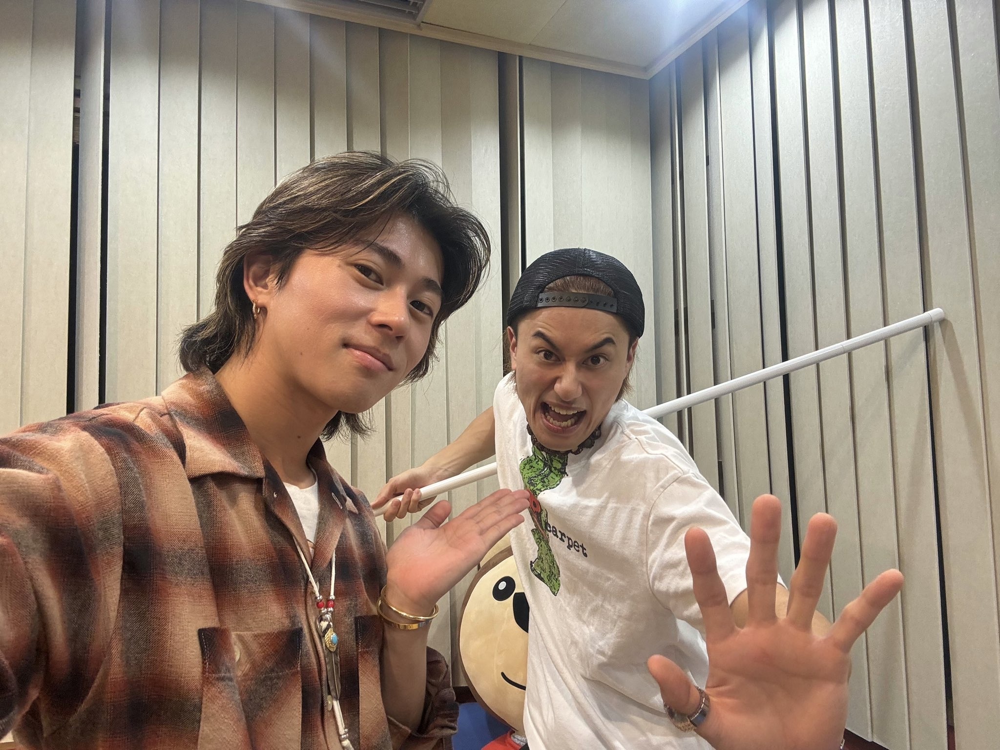 跟小島還在聽歌的時候,工作人員在錄音室外看到了一根超長的棍子之後靈機一動,緊急拿進錄音室給小島甩的謎之如意棒(來自工作人員ㄉ報告)