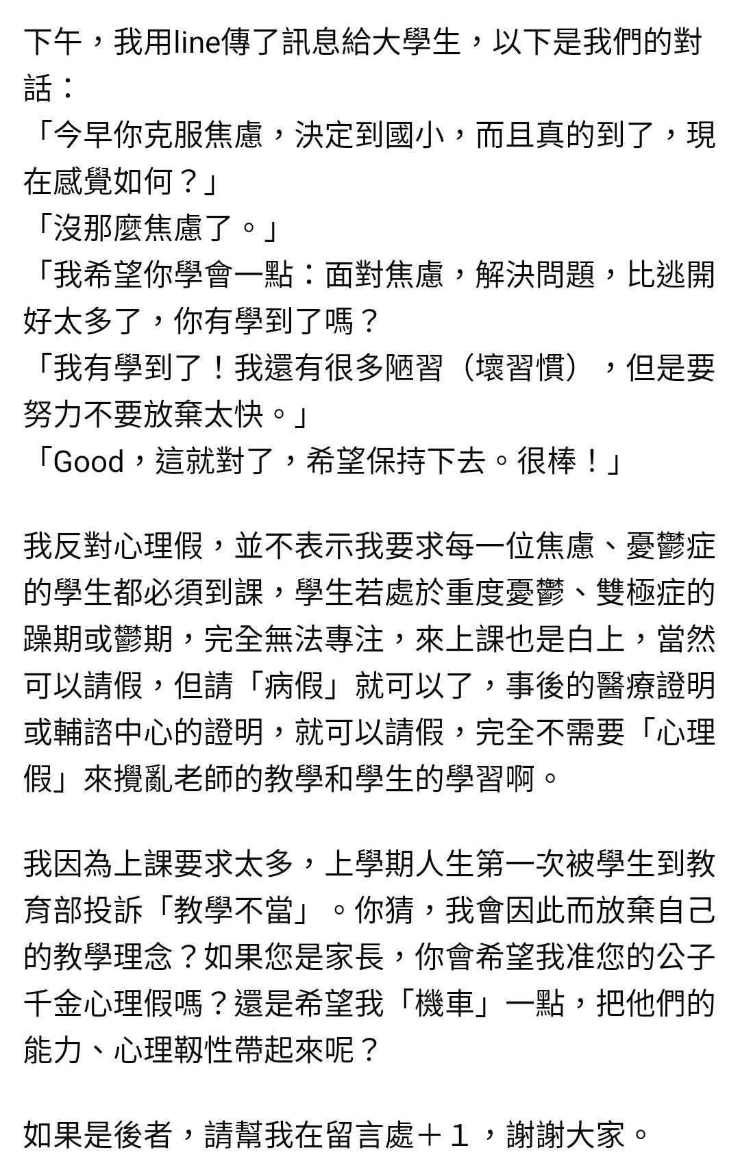 以及敢請心理假本來就滿需要勇氣的吧,怕被關注的話