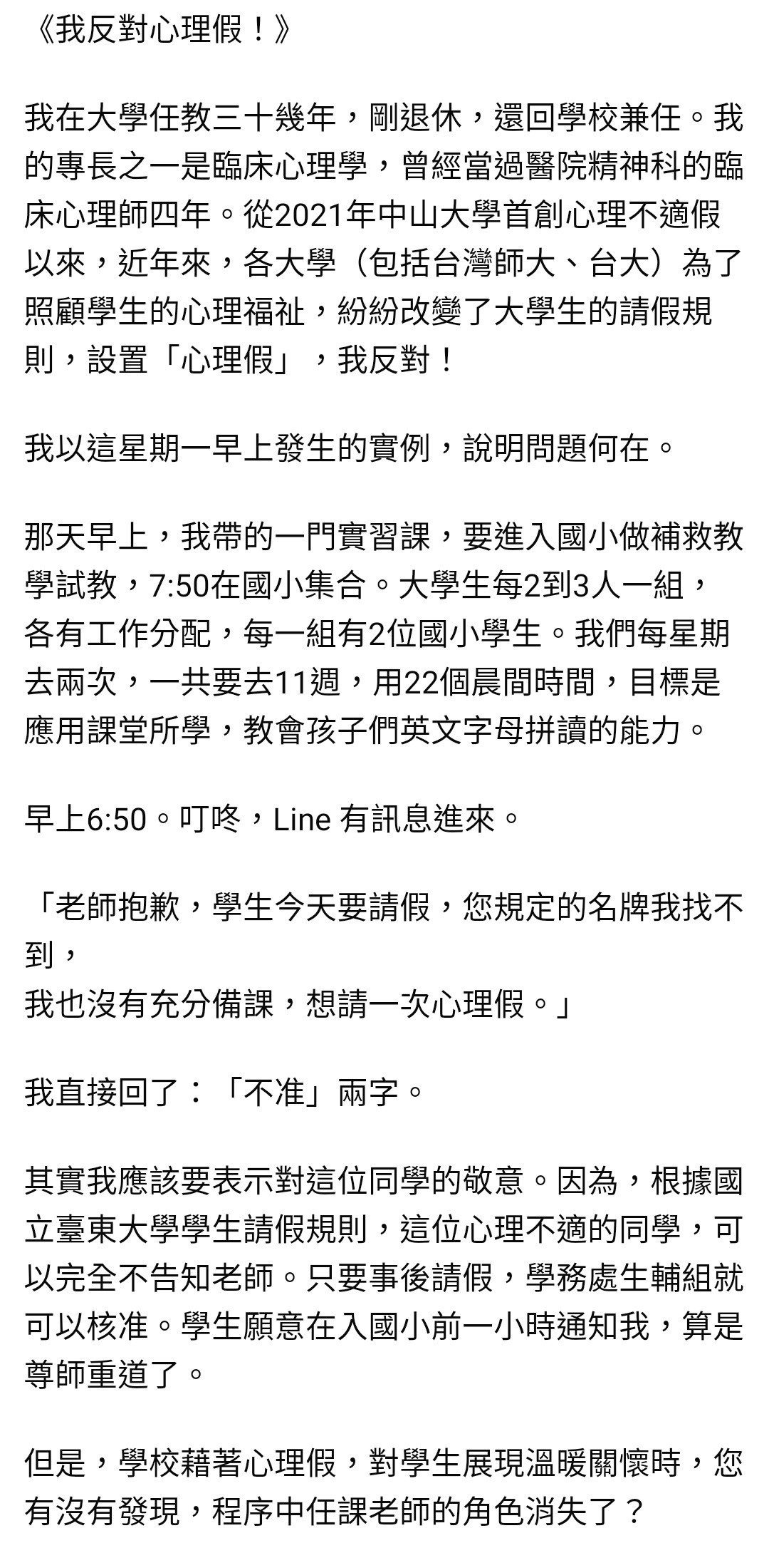 怎麼前陣子別人討論生理假,現在看到人在討論心理假