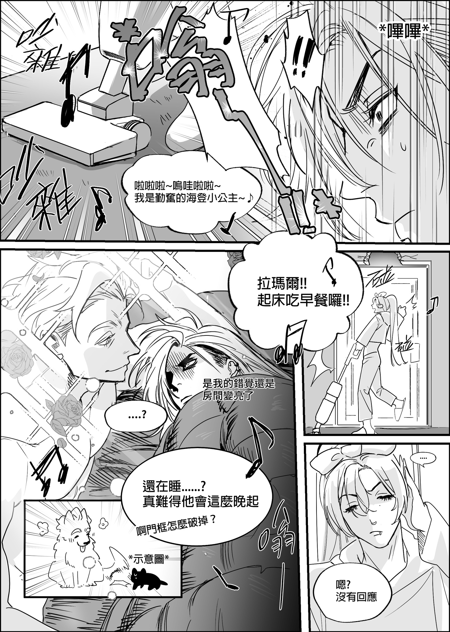 : 其實平常都是拉瑪爾比較早起(因為沒睡好) 但是今天看拉瑪爾都還沒起床就開始打掃ㄌ.....