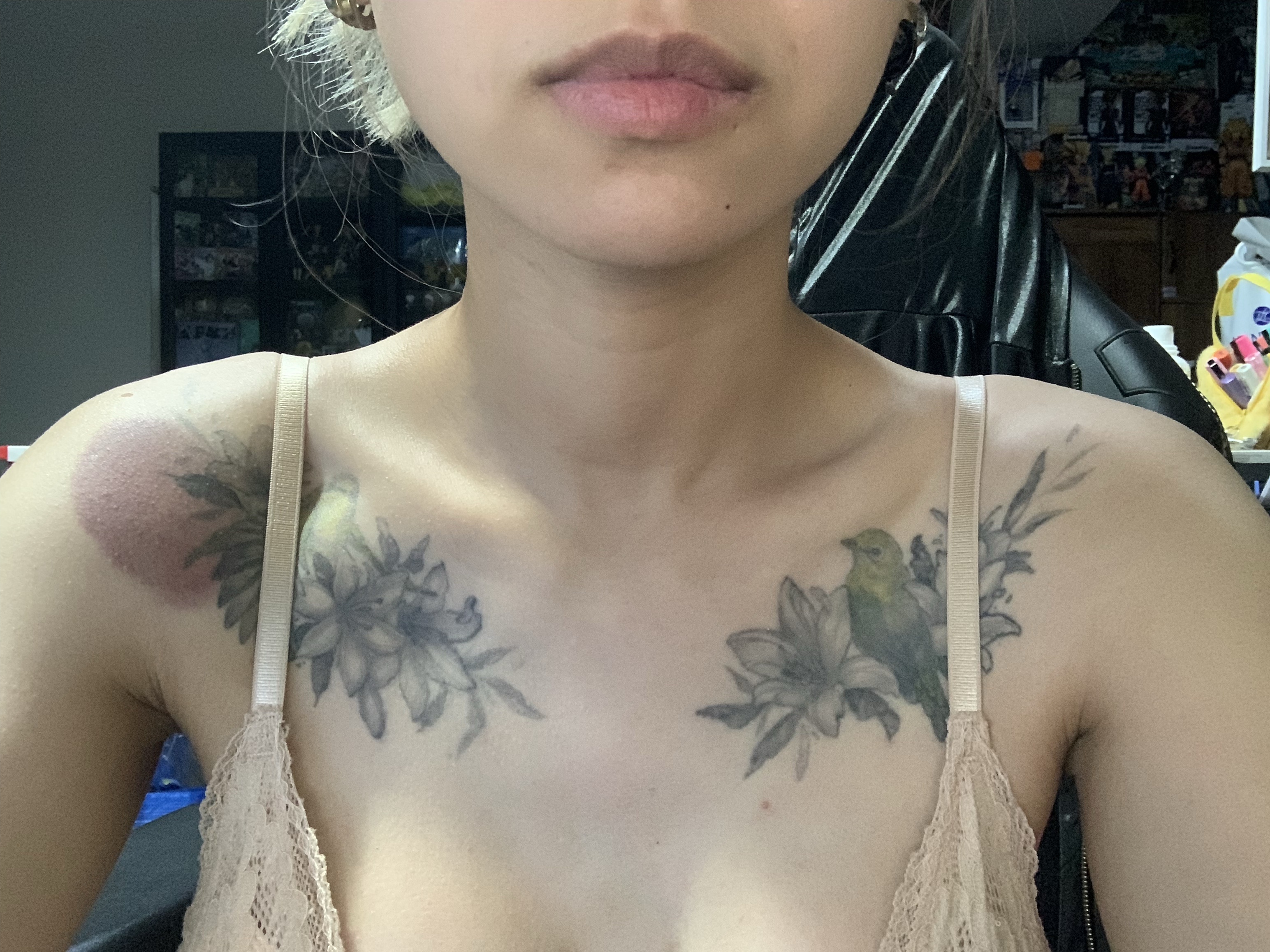 昨天在工廠忙,休息時間師傅拿出一盒拔罐組請我幫她拔,突然覺得很有趣也請師傅幫我拔看看,聽說有不舒服的部位拔才會有顏色,拔了右肩常在痛的點馬上就瘀血,沒在工作(?)的左肩真的完全沒痕跡,好神奇