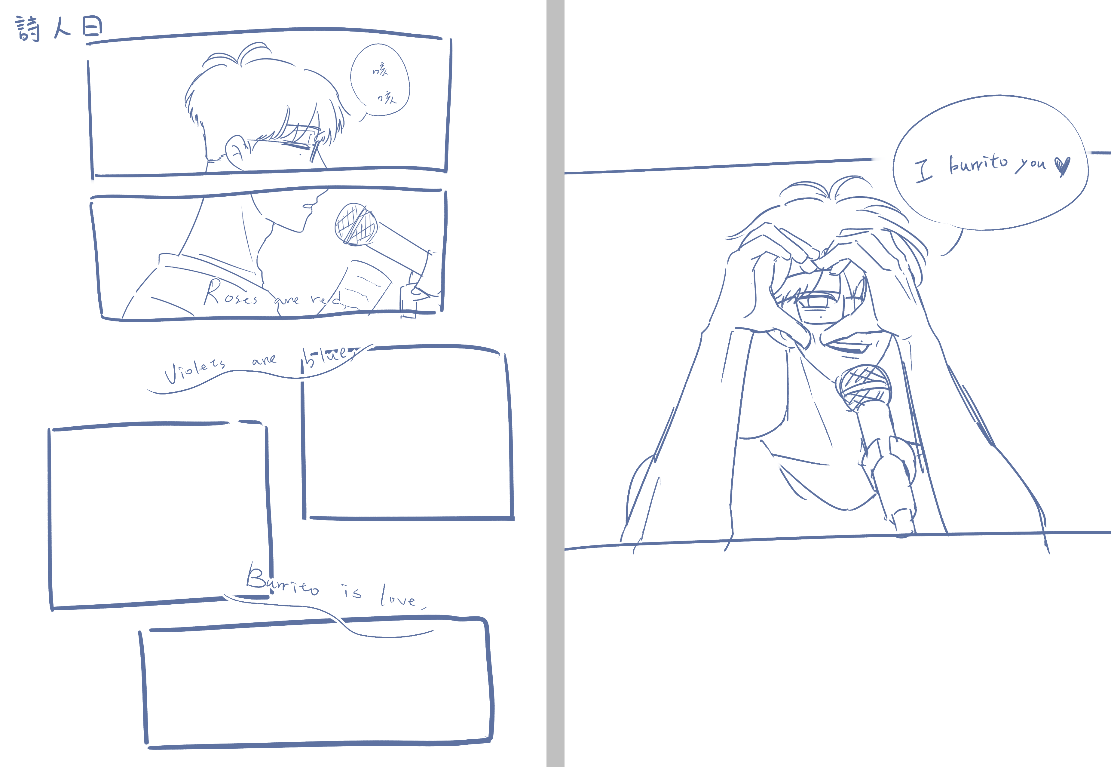 詩的內容是「Roses are red, violets are blue, burrito is love, I burrito you.」