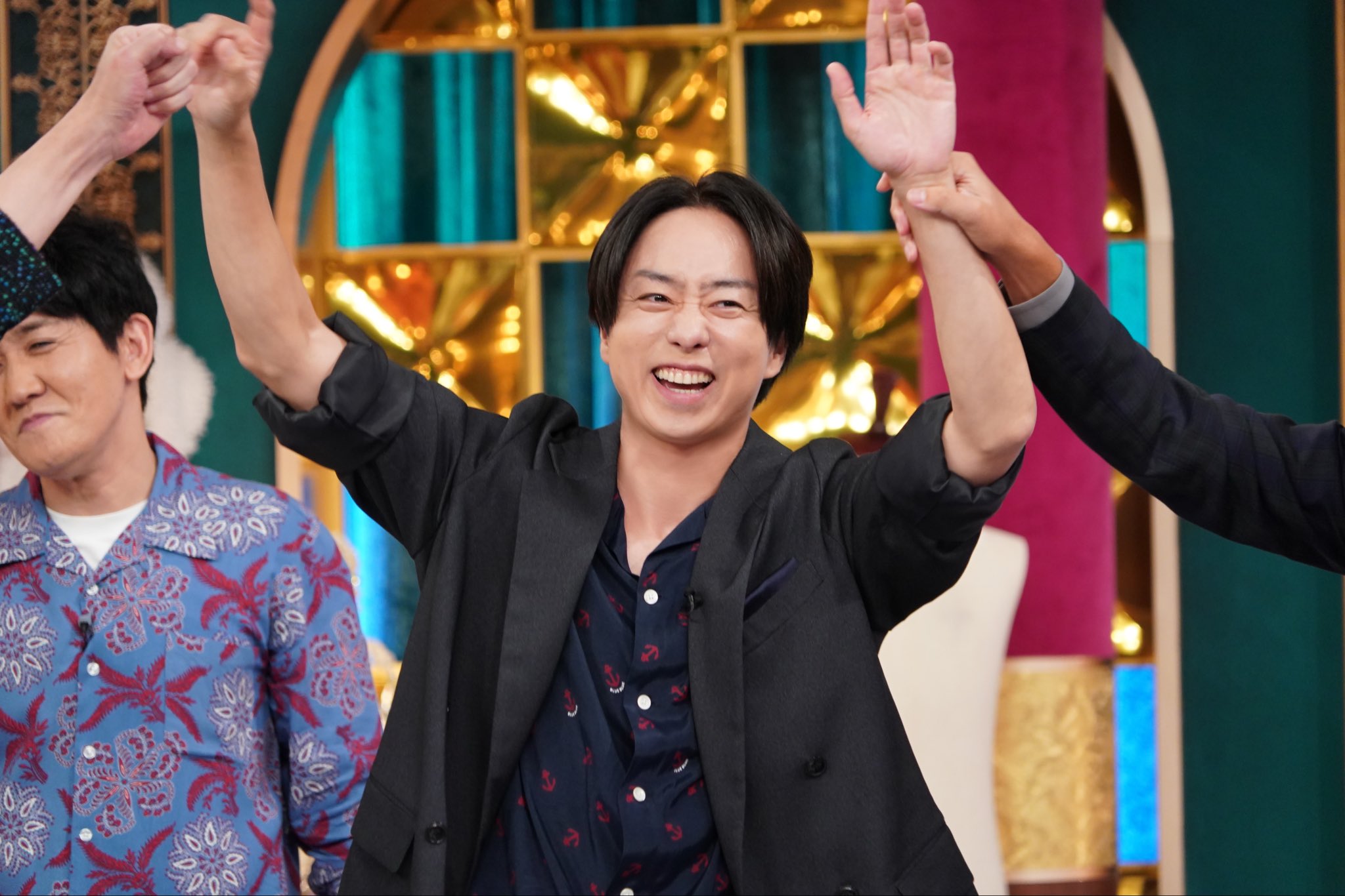 穿得彷彿大阪黑道的sho在一群藝人之間臉異常的小