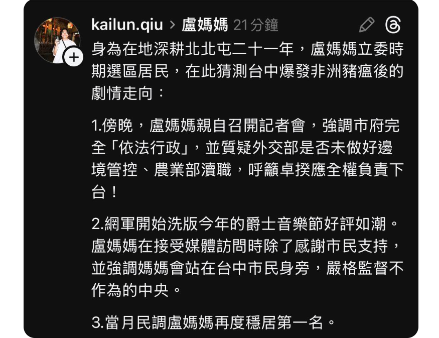 民進黨弄出非洲豬瘟就是要逼我們吃萊豬討好美國賣台』