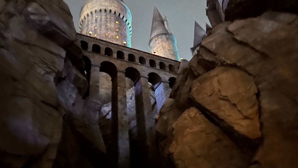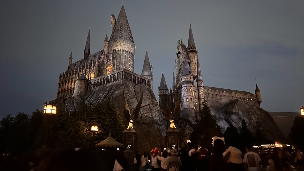 對比之下暗到我快看不到路的哈利波特園區