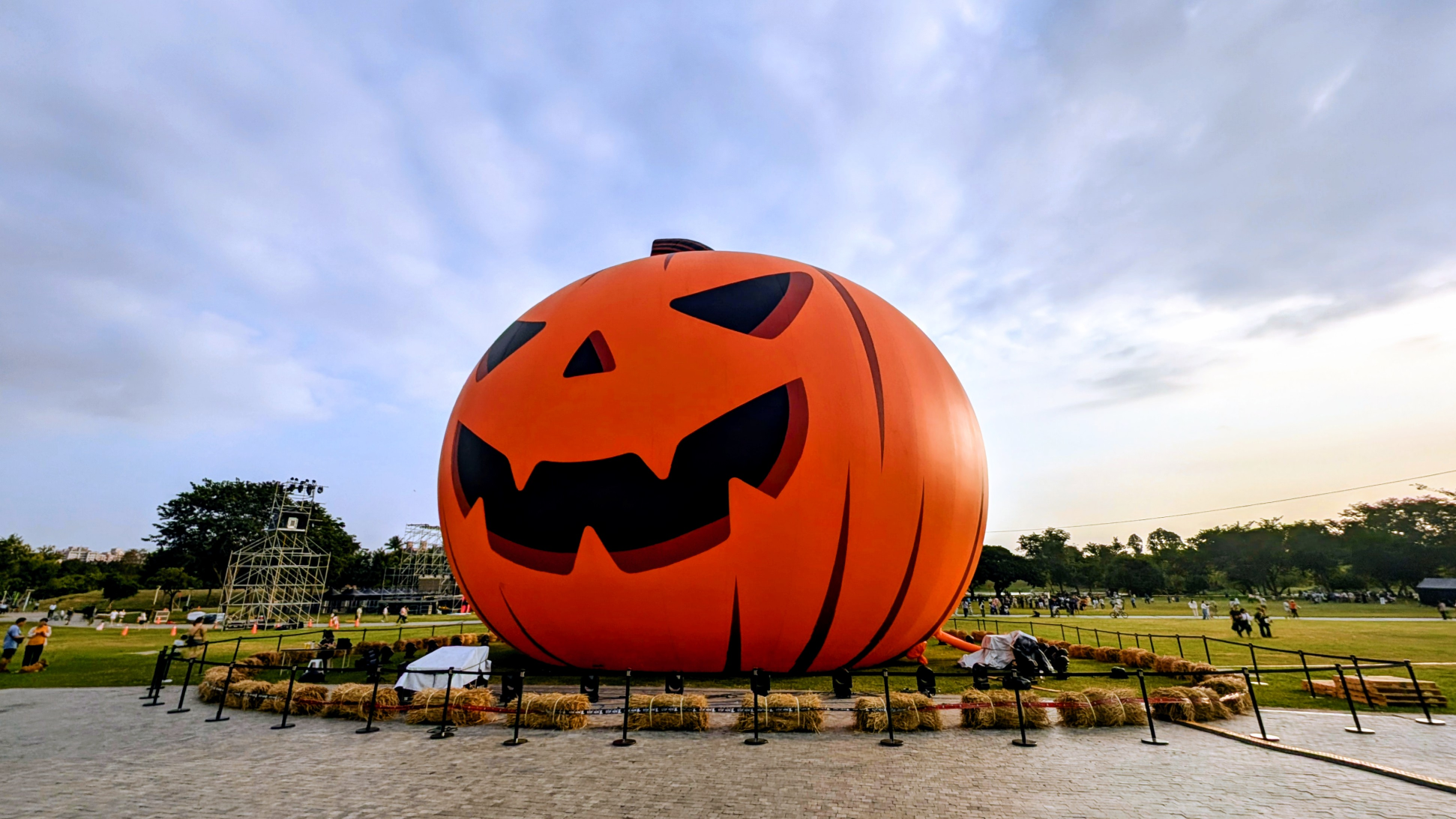 拍一張衛武營戶外設置的萬聖節南瓜大氣球