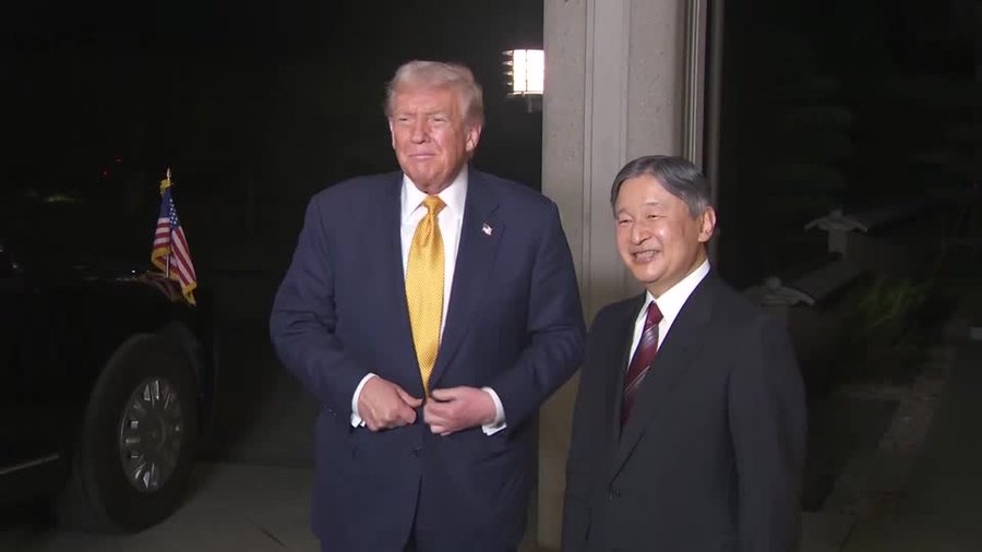 川普抵達日本進行國是訪問,在東京皇宮受到德仁天皇的迎接。