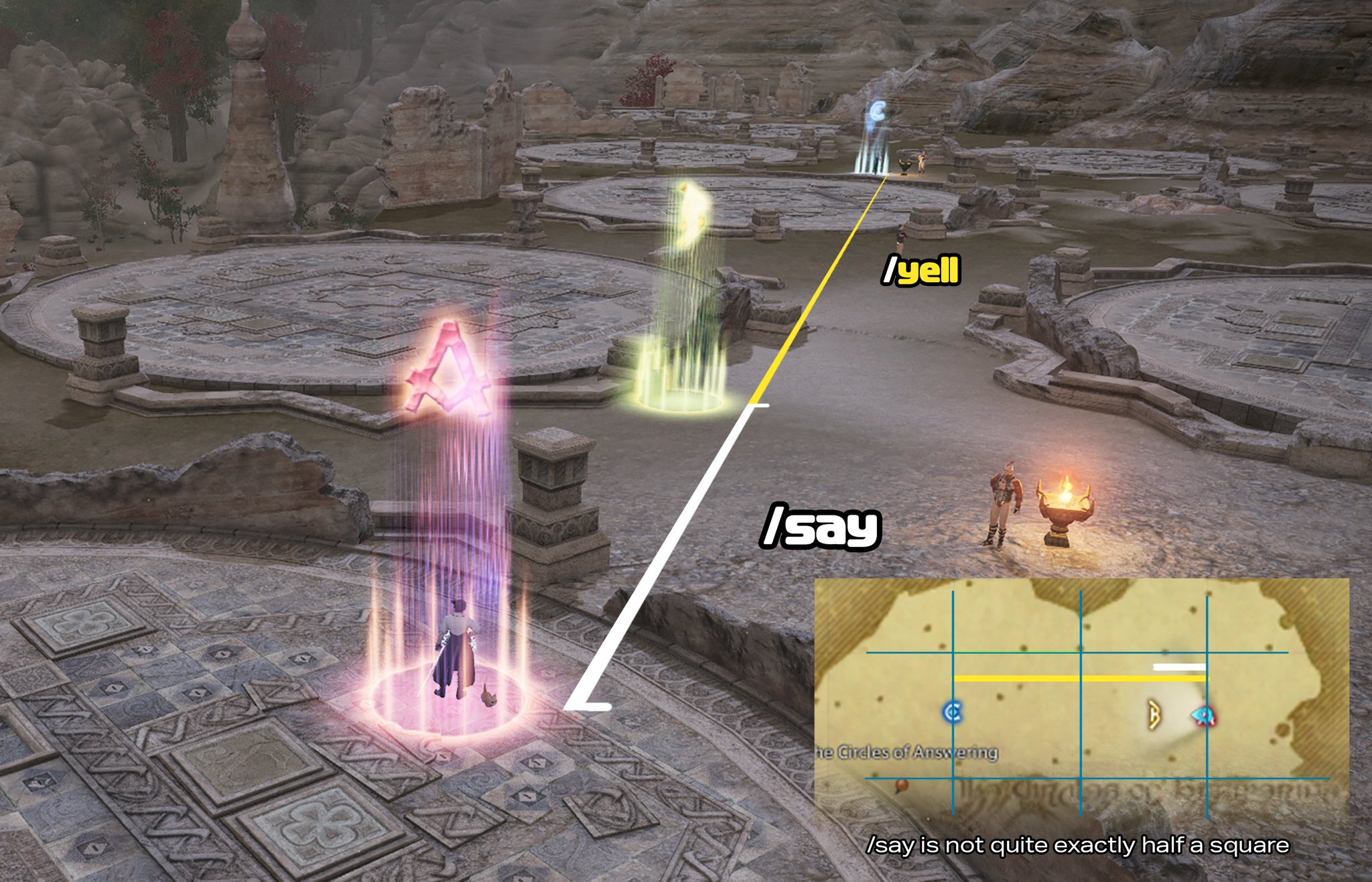 下面的圖有展示say跟yell的有效距離