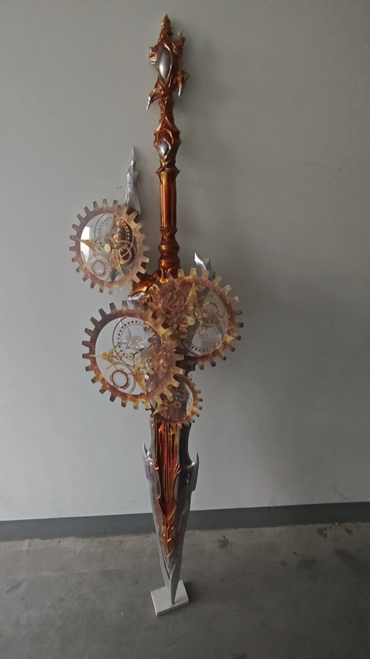 可惜的是齒輪不透明,齒輪應該用玻璃染色那種透光的,之前有COS騎士的拿絕亞武器那位比較還原