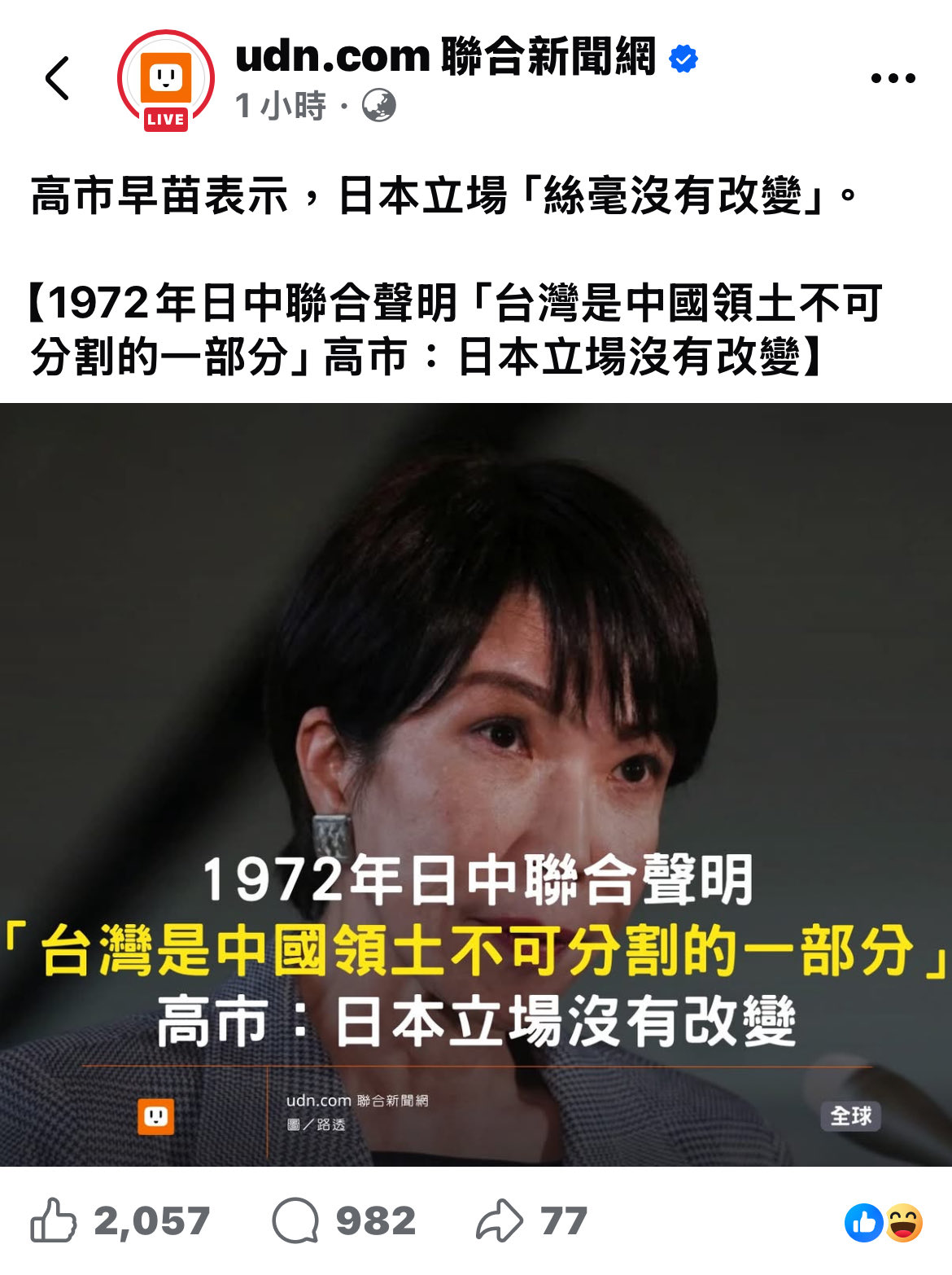 川普簽署台灣保證實施法、高市早苗引述日中聯合聲明強調對台政策沒改變。自由時報的呈現很正常。