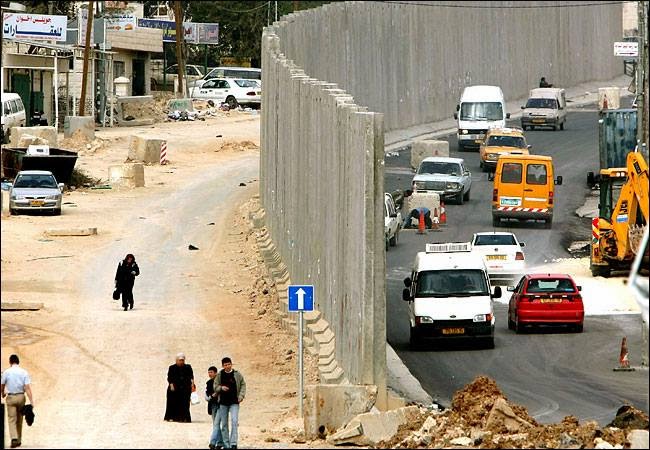 圍繞West Bank的黑線是高到摸不到的隔離牆,圖片年代有點久遠,目前圍牆全部建造完畢,包括在West Bank內也有設置圍牆,好區隔巴勒斯坦與以色列人, 紅色小點是設置的通電鐵網。