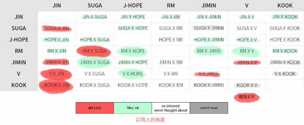 不然其實現實上的防彈7人不管怎麼玩,怎樣C7取2,42種cp互動我照樣看的很開心很愉悅