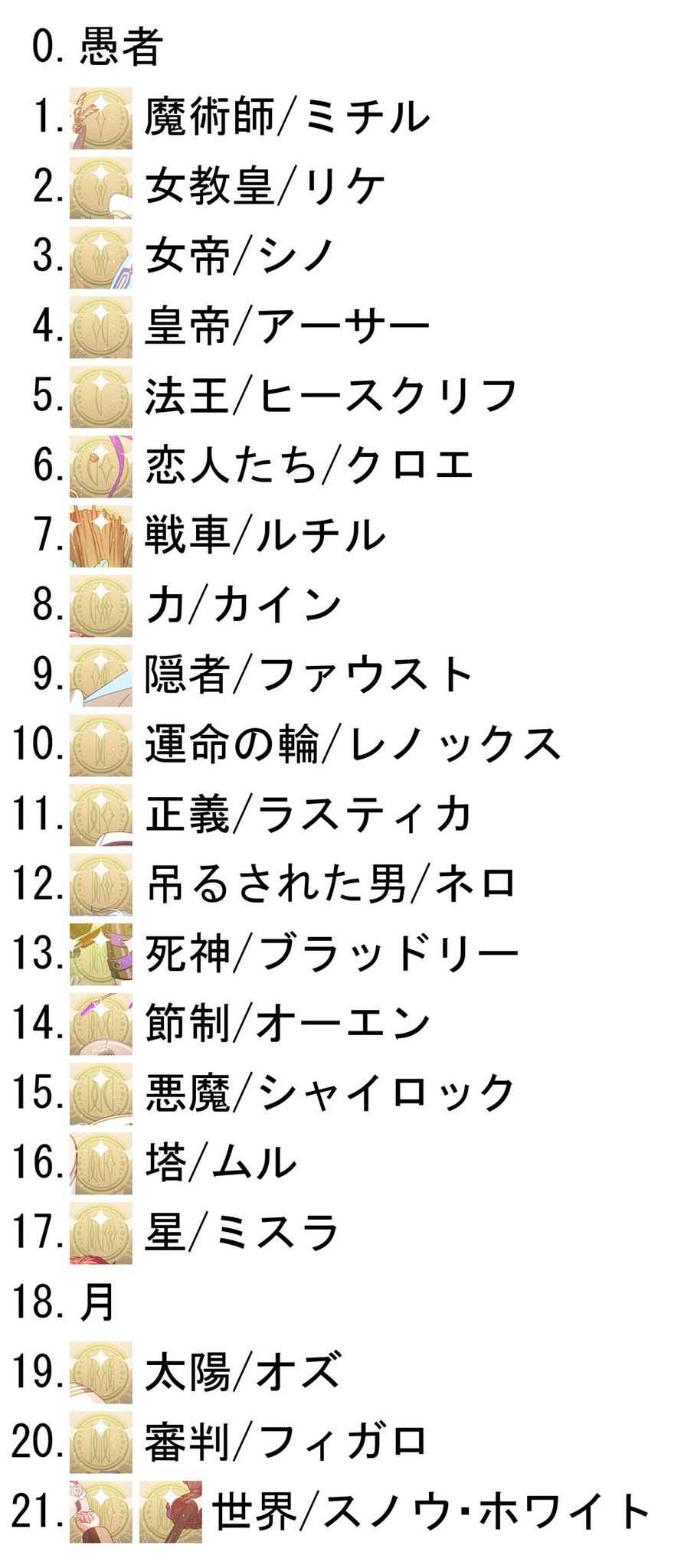 每位魔法使對應的塔羅牌不一樣