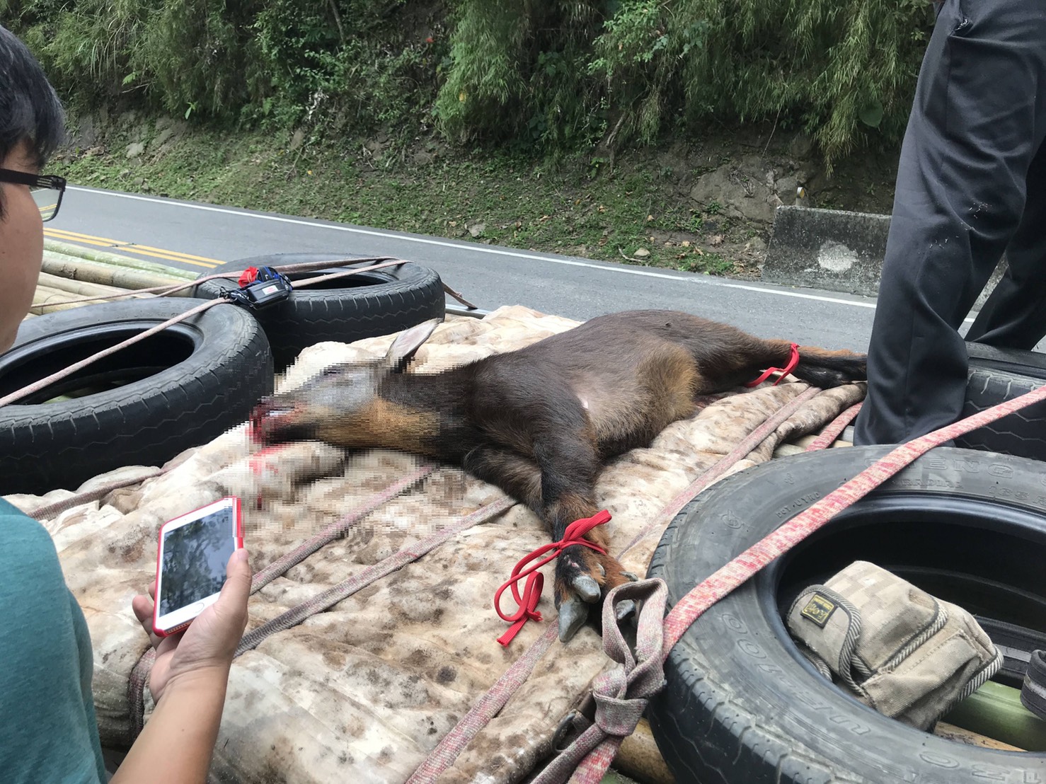 阿里山公路車禍 長鬃山羊被撞腦震盪行走搖晃