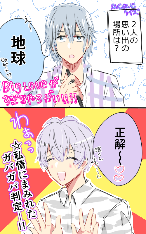 (不管可靠那題答對方是正解啦(擅自,果然是最尊ㄉ咩走⋯⋯⋯⋯題目出來時兩人嫌關鍵時刻太抽象,兩個人個性相反,擅長的關鍵時刻也不同,很難回答。寫了對方,結果工作人員說答錯。兩人抗議這算是某種意義上的正解吧,互相記掛的兩個人啊!工作人員還是說答錯。貝西就說:「這題算是雖敗猶榮吧。」KENN大喊:「沒錯!就是這樣!」感覺還想繼續聊下去,結果工作人員拿出「沒時間了,接下來是最後一題」的看板,強制終止對話