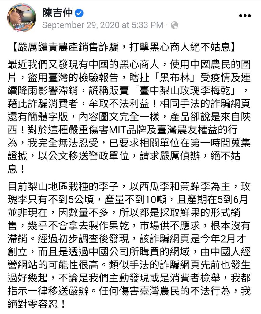 農委會 陳吉仲 分享 詐騙方式