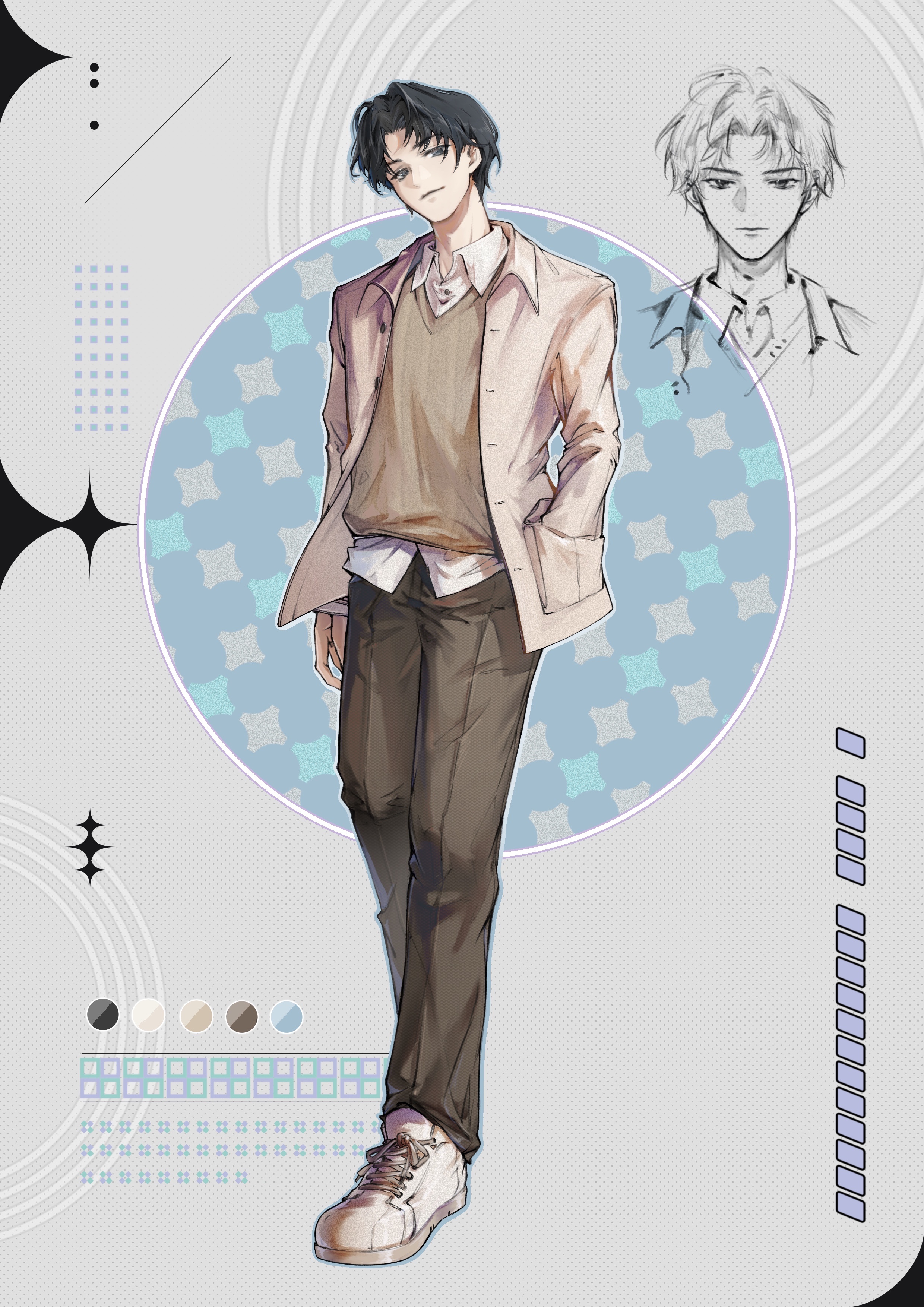 也是因為這樣所以兩人設定都是普通的黑髮黑眼,服裝也是走在路上會看到的正常人穿著(?)頂多去俱樂部或是一些特殊場合會穿比較正式一點的禮服/西裝