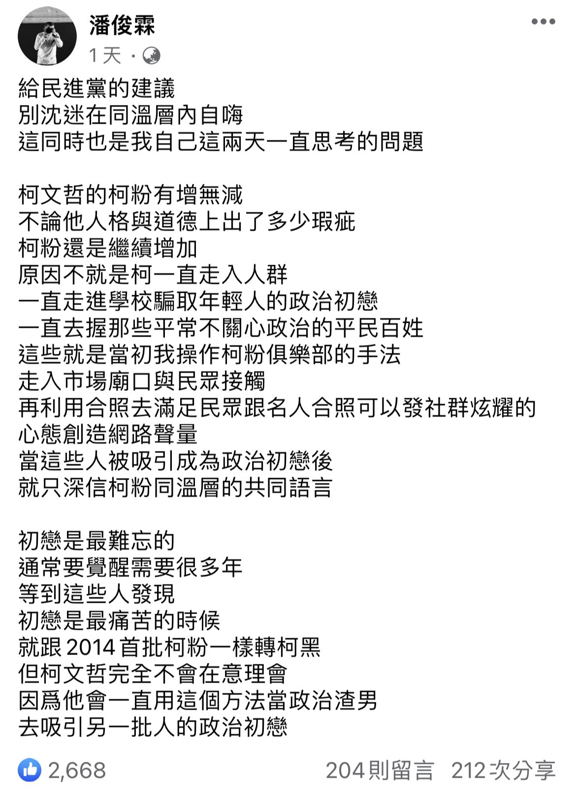 在民主制度底下,年輕人本來就會喜好偏左、非執政黨的政客,柯文哲騙一下,把柯錯認成偏左台灣良心的自然不會是少數;從年輕人的角度去下判斷時的參考、執政就是一種包袱