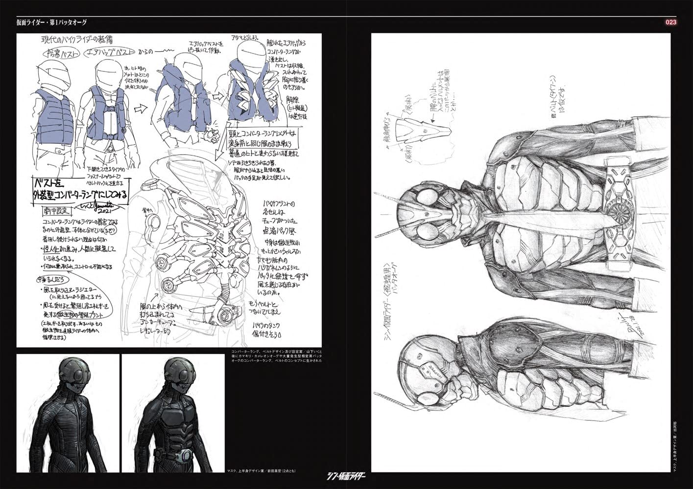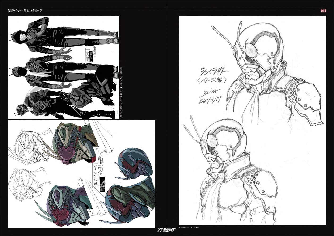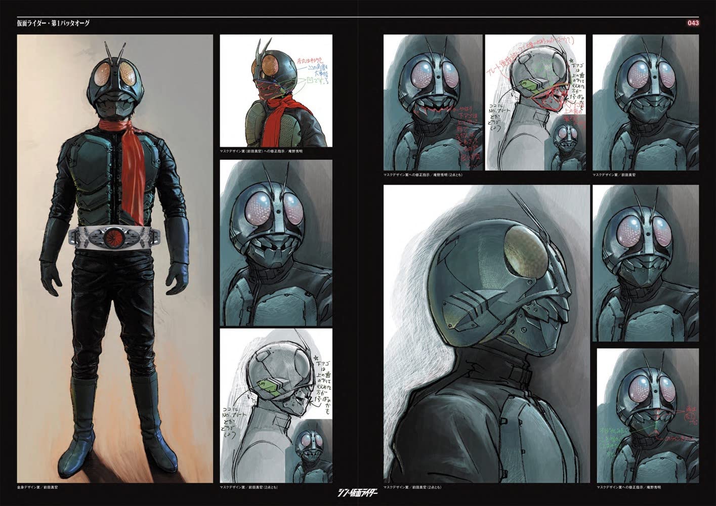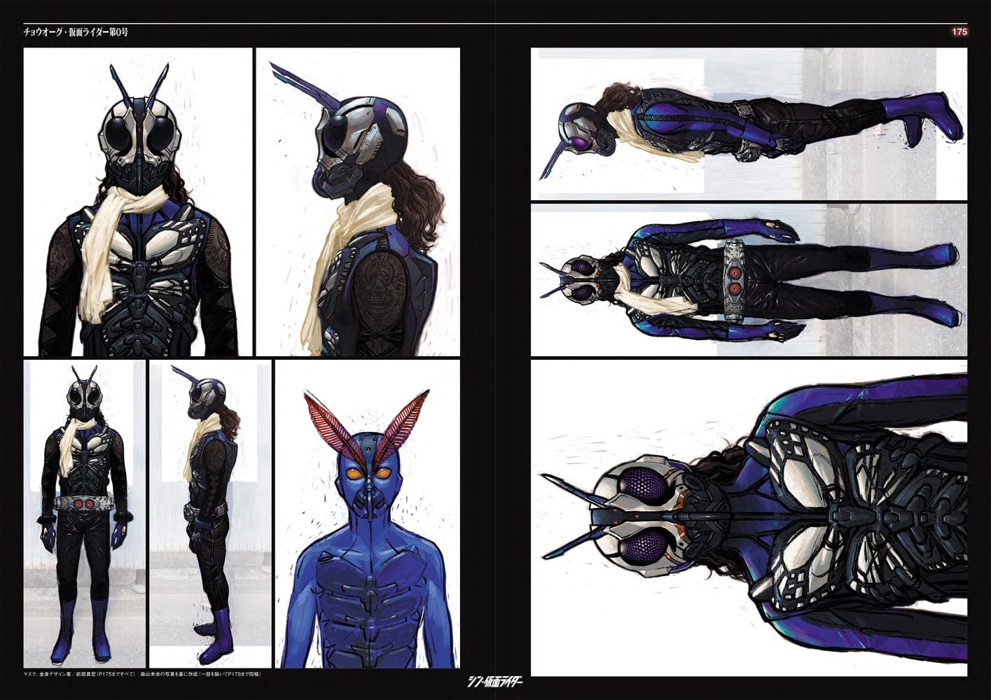 看過電影終於可以好好看Shin假面騎士設計書了。不意外地工程非常繁複,最初由前田真宏設計時(不意外地)都從肉體變異的角度設計,因為實在太難拍了,還是改成現在皮套鎧甲的感覺。然後每套服裝待演員確定之後還會照演員的外型體態再重新調整設計過