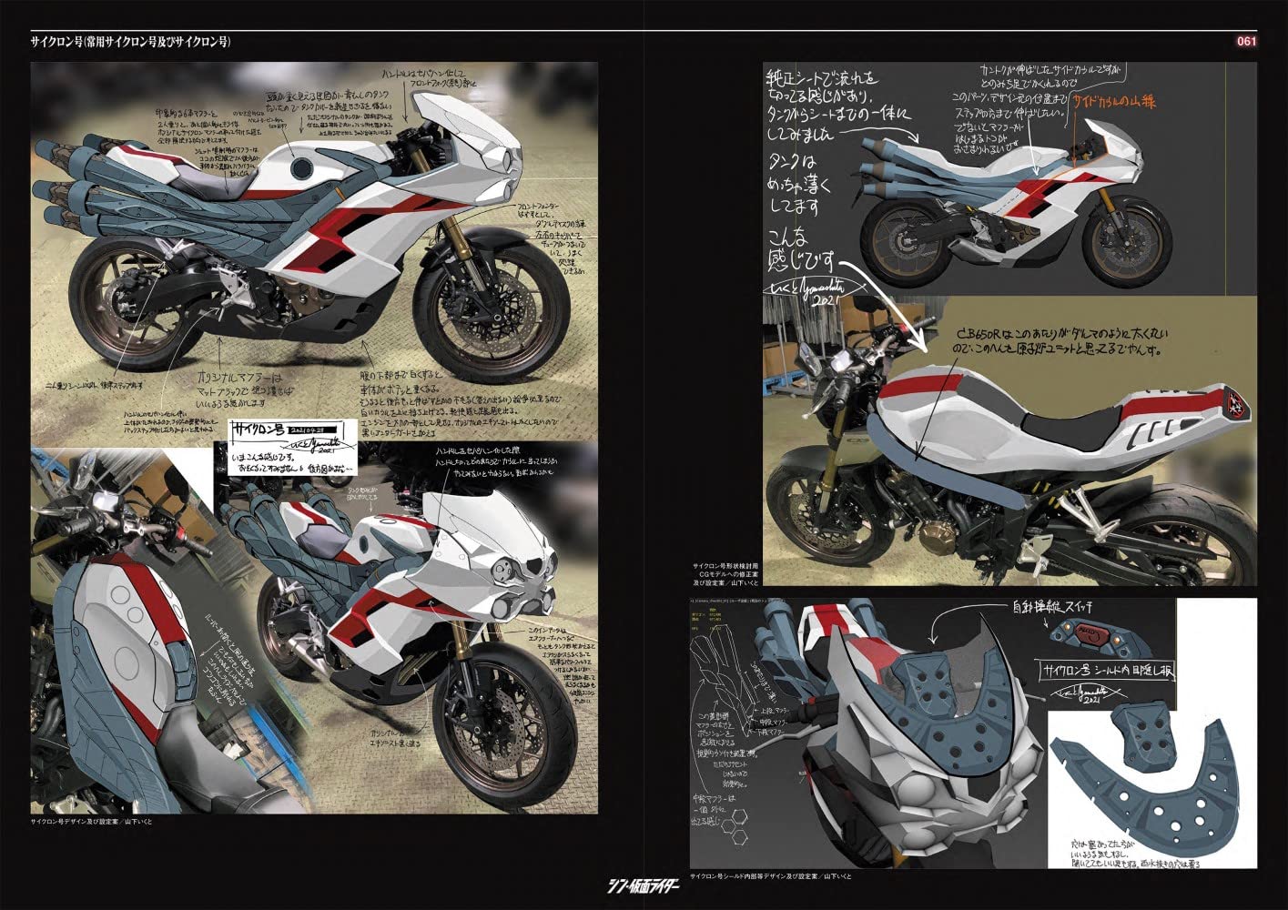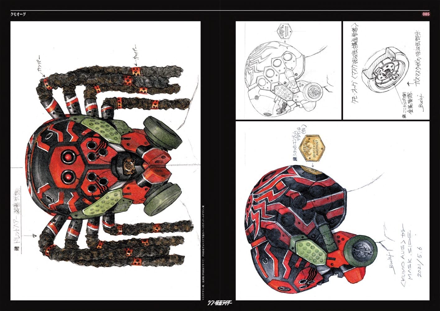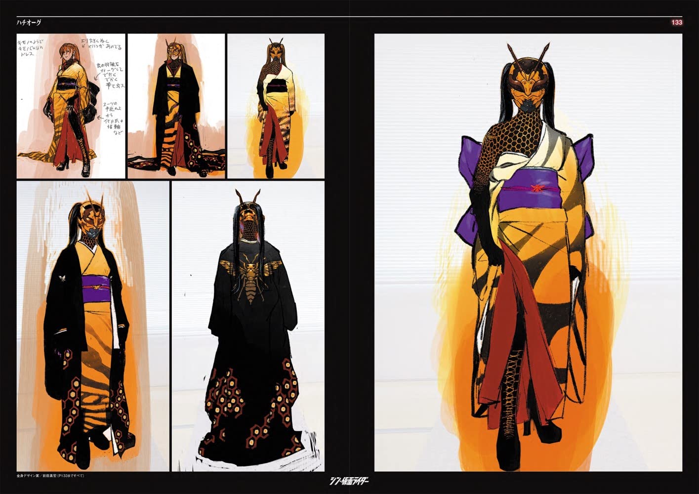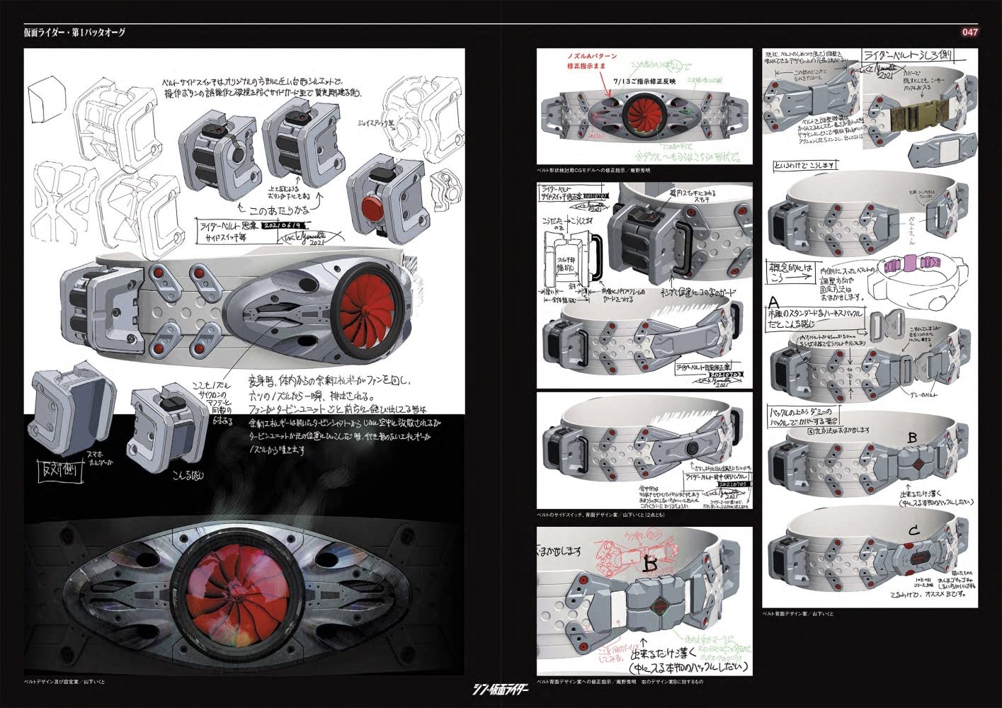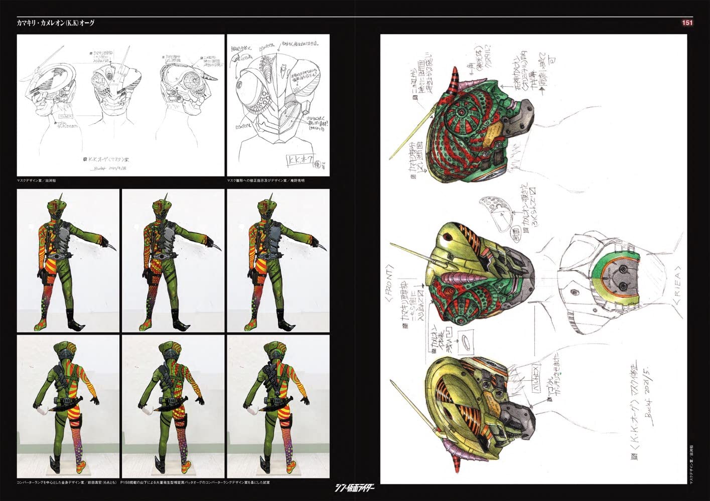 看過電影終於可以好好看Shin假面騎士設計書了。不意外地工程非常繁複,最初由前田真宏設計時(不意外地)都從肉體變異的角度設計,因為實在太難拍了,還是改成現在皮套鎧甲的感覺。然後每套服裝待演員確定之後還會照演員的外型體態再重新調整設計過