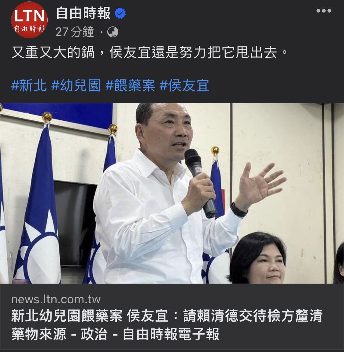 新北幼兒園餵藥案 侯友宜:請賴清德交代檢方釐清藥物來源 - 政治 - 自由時報電子報