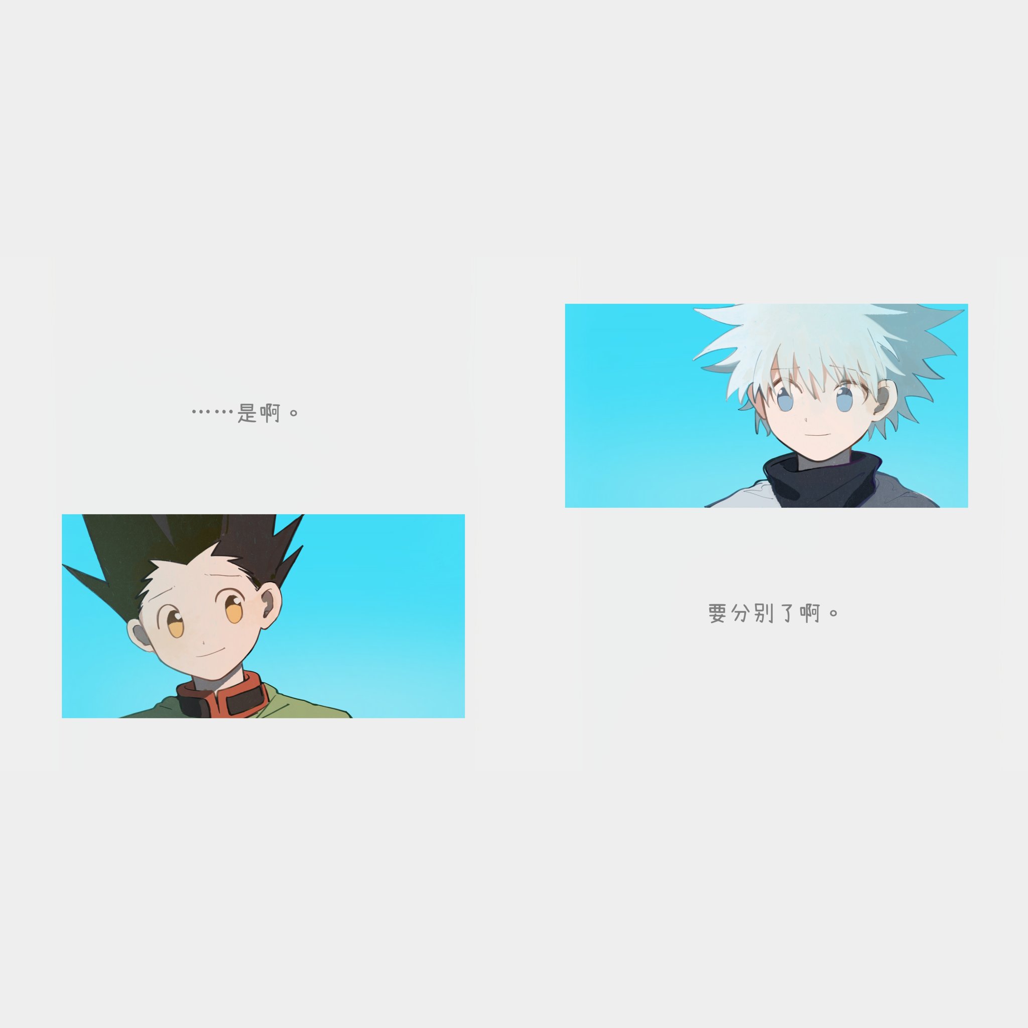 在故事中也一樣十年不見了,希望奇犽跟阿路加一起在各地旅行玩得很開心,跟妹妹在一起也能夠有跟以前不同的全新體驗。
