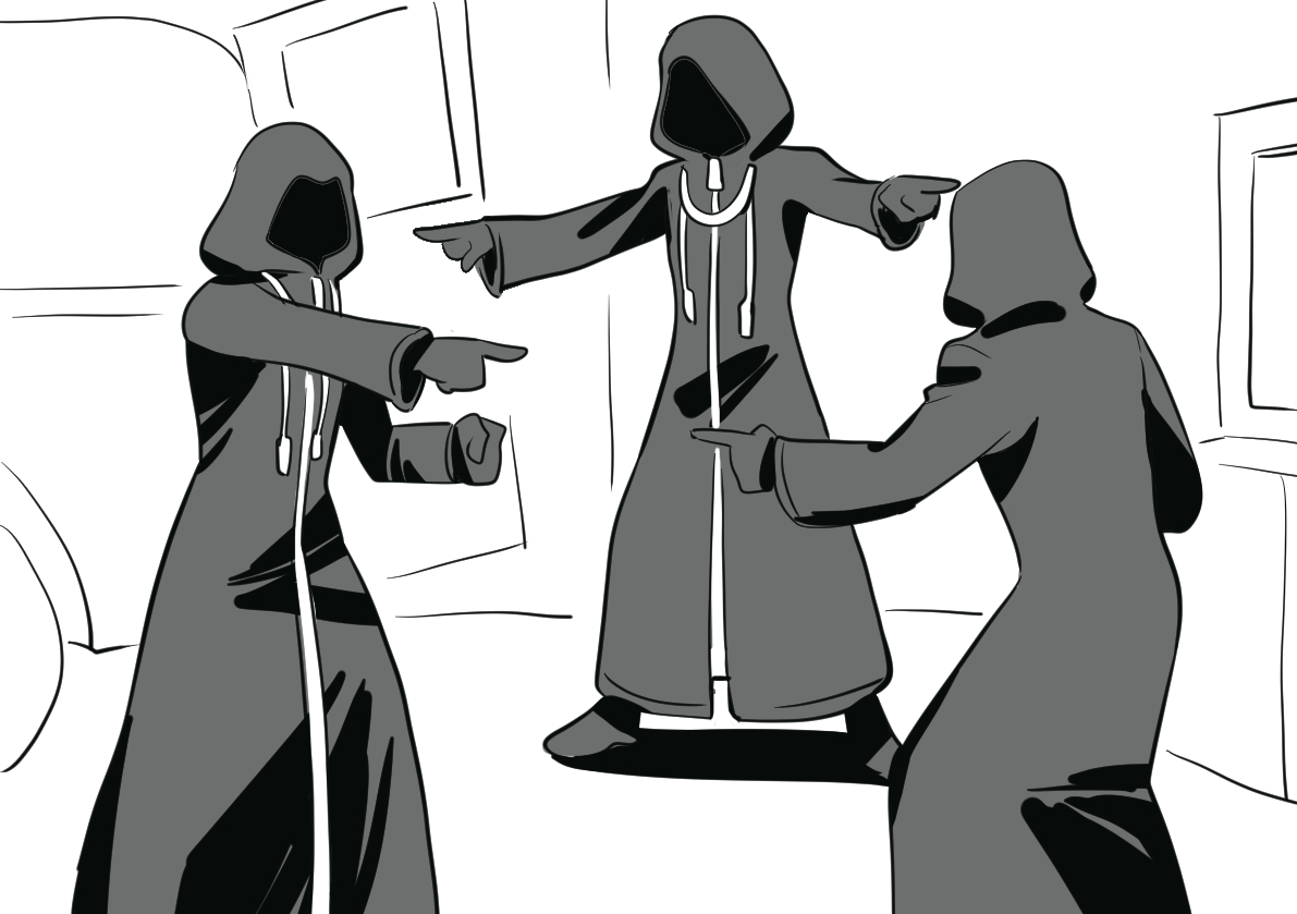 眼前一堆堆黑衣人像可愛的推銷員遊說黑暗很棒喔加入我們吧,總覺得既地獄又好笑😂