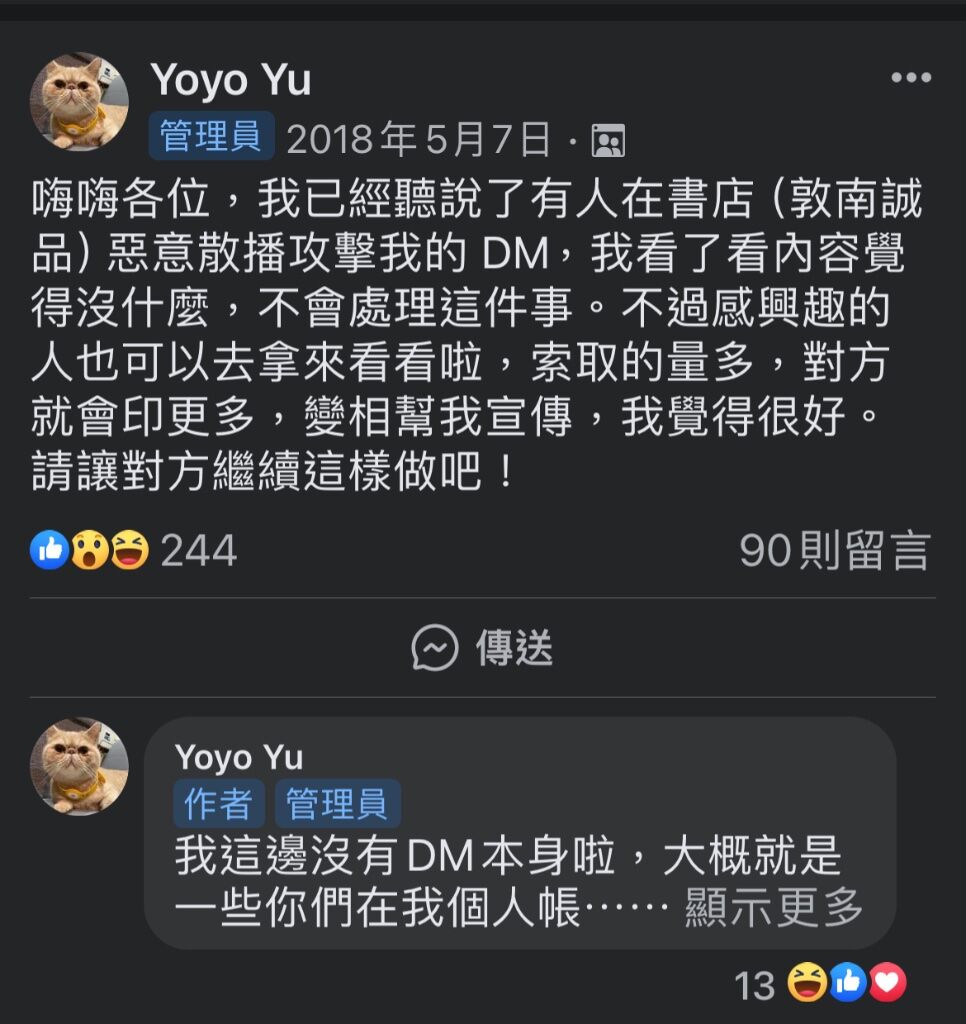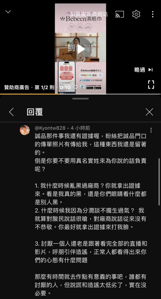 ㄐ在別人頻道留言解釋誠品傳單